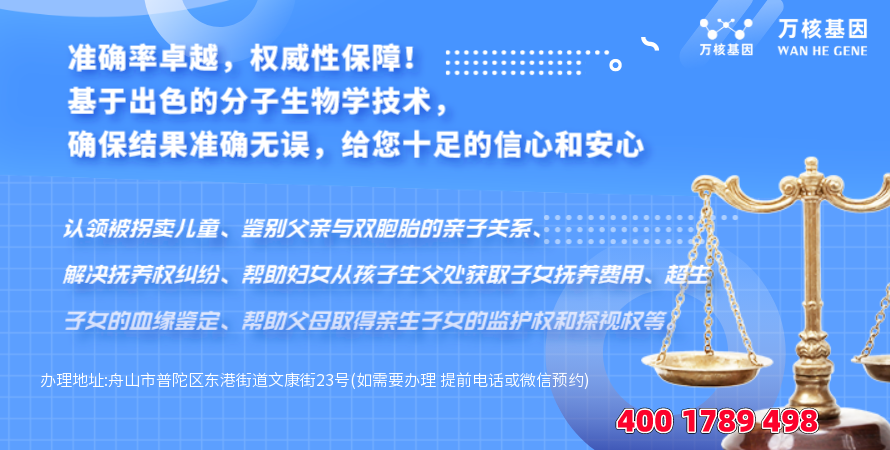舟山亲子司法鉴定办理地址:舟山市普陀区东港街道文康街23号(如需要办理 提前电话或微信预约)-预约电话:4001789498。